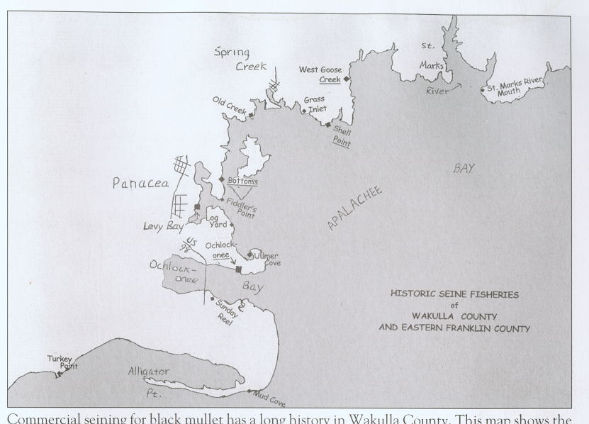 ![]() Map of Wakulla County's historic fishing spots. Photo from David Roddenberry in: Page, Eddie, 2001. Images of America: Wakulla County; Arcadia Publishing, Charleston, S.C. |