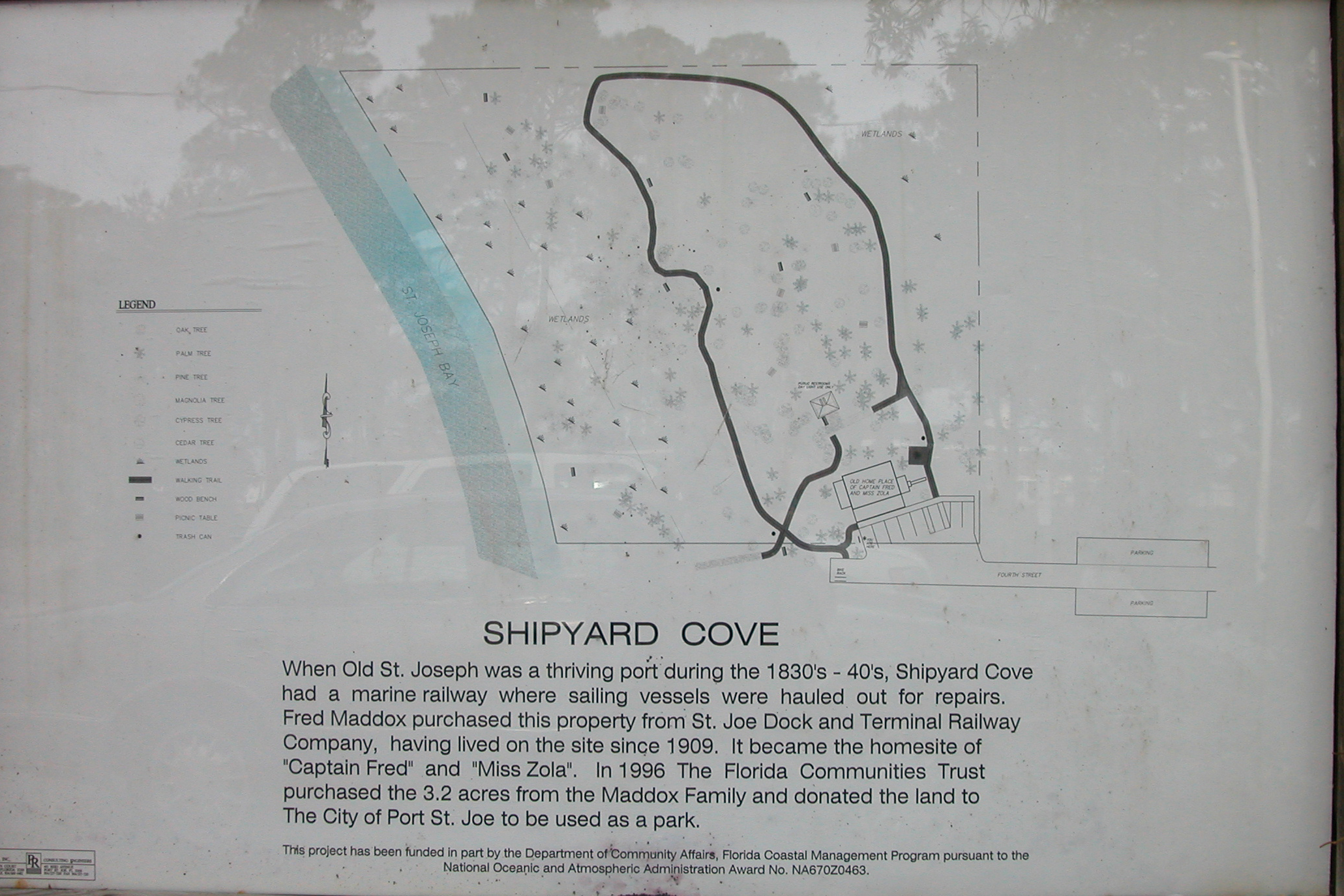 By 1909, the railroad was completed to St. Joseph Bay and work began on a dock where the present marina is located. A bunkhouse for workers was built on Shipyard Cove, a shipyard in the early 1800s. As a young man, Fred Maddox lived in the bunkhouse and helped build the dock, which was completed in 1910. In April 1910, the Swedish sailing vessel the Henrietta was the first ship to dock and load lumber at the new dock. She was piloted by John Maddox. By 1913 the Calhoun Lumber Company had constructed one of the largest sawmills in Florida adjacent to the railroad and dock.